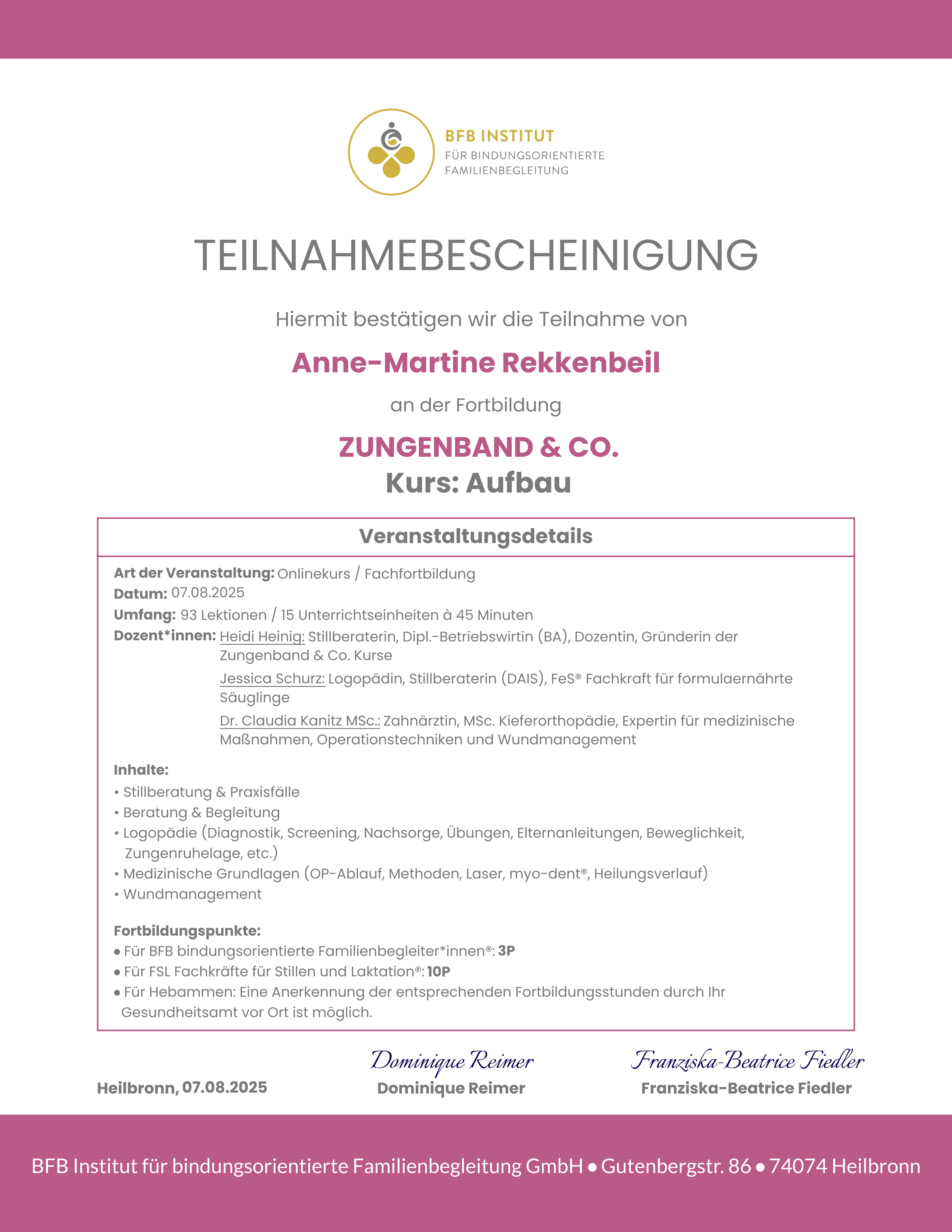 Fachfortbildungen Zungenband